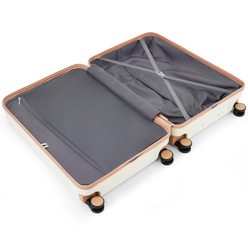 Why Choose Premium ABS Travel Luggage Set, 3-Piece TSA Lock Suitcase Ensemble with 20, 24, and 28 Inch Sizes with 360° Spinner Wheels, ivory and golden?