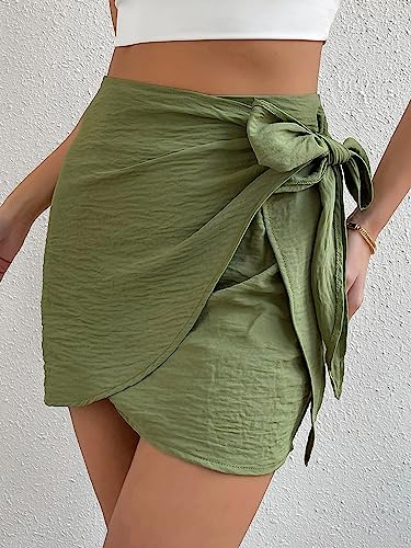 Women Trendy Summer Comfy Skirts combining comfort, style, and practicality. making it a perfect choice for any casual day.Please refer to the size chart before purchasing.Material:Woven FabricDetails:Wrap / Style:Casual / Details:Knot / Type:Wrap / Color:Green / Pattern Type:Plain / Waist Line:High Waist / Length:Mini / Fit Type:Regular Fit / Fabric:Non-Stretch / Material:Woven Fabric / Composition:95% Polyester / Composition:5% Elastane / Care Instructions:Machine wash or professional dry clean / Sheer:NoModel is Wearing:S, Height:170cm/66.9inch ,Bust:82cm/32.3inch ,Waist:65cm/25.6inch ,Hip:91cm/35.8inchWomen Trendy Summer Comfy Skirts Style: Ideal for casual outings, vacations, work, or daily wear. dress it up with a blouse and heels for a more polished style. Perfect for everyday use. High quality materials and excellent craftsmanship ensure long-lasting durability.