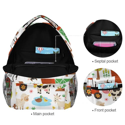 Farm Animals Cow Pig Sheep Horse Donkey Backpack for Boys Girls Teens, Kids Bookbag Laptop Tablet Travel School Bag with Name Tag 7