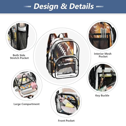 Football Clear Backpack Boy Girl Kids Heavy Duty PVC Transparent Bookbag School Bag with Multiple Compartments