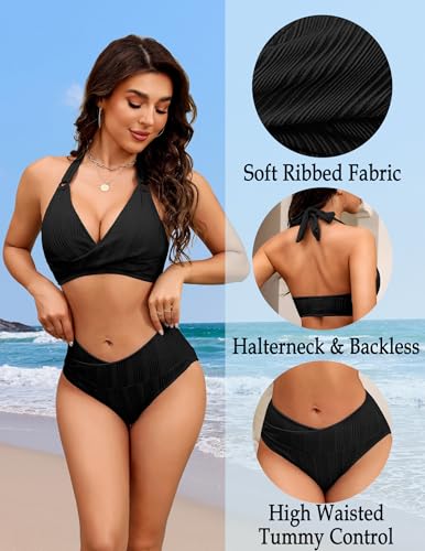 Fabric type: 90% Polyester, 10% SpandexCare instructions: Machine Wash, Avoid High Heat, Line DryOrigin: ImportedClosure type: Pull OnMATERIAL: 90%Polyester,10%Spandex. The swim suits for women 2025 are made of super stretchy ribbed fabric, which is elastic, soft, comfortable, breathable and durable.BIKINI TOP: Criss cross wrap halter tops with removable padding can be adjusted by yourself to give chest support. Sexy backless swimsuits for women are trendy and flattering.BIKINI BOTTOMS: High waisted bikini sets for women,the bikini bottoms of 2 piece swimsuits create charming curves, making you keep comfortable in this bikini sets in a flattering way.OCCASION: This bathing suit for women tummy control suitable for beach, party, swimming pool, sports, vacations, cruise, honeymoon. The modest bathing suit for women can be a wonderful gift for a loved one.SIZE TIP: Please measure your size and refer to our size chart to choose the best fit for you before ordering this high cut swimwear! Perfect for everyday use. High quality materials and excellent craftsmanship ensure long-lasting durability.