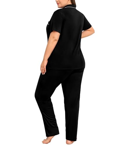 SWOMOG Women's Plus Size Pajama Set Short Sleeve Sleepwear Top and Pants Button Up Pajamas for Women Loungewear