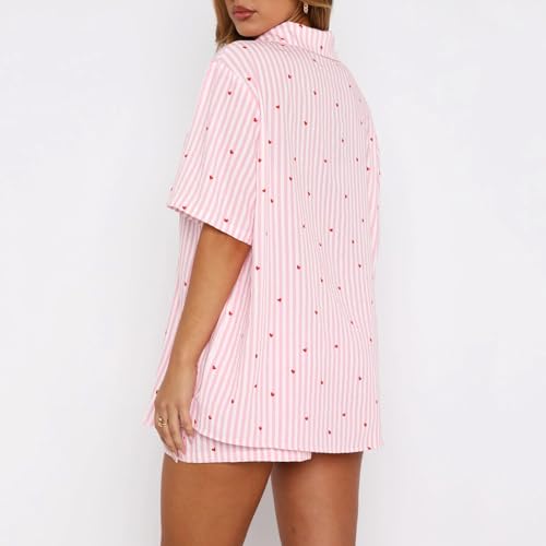 XBTCLXEBCO Women Valentines Pajama Sets Heart Print Short Sleeve Button Down Tops and Shorts 2 Piece Pjs Set Loungewear 5