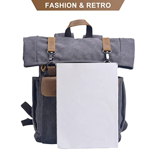 Men's Canvas Backpack Retro Multipurpose Design Handbag Large Capacity Shoulder School Bag for Travel Camping Hiking 6