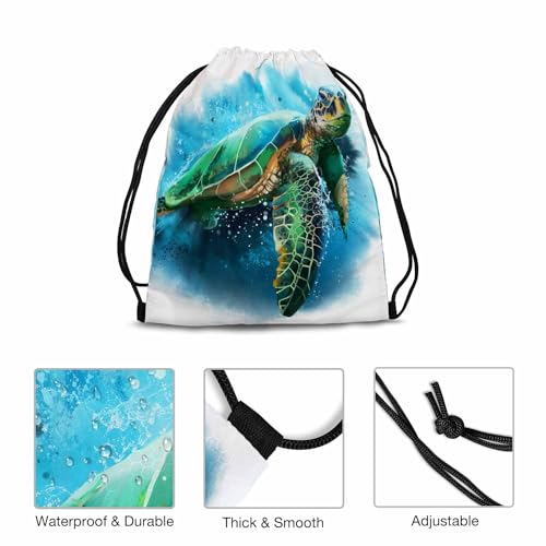 HOT ! Big Sea Turtle Drawstring Bags Sports Bag Wildlife Ocean Underwater Animal Slow Swimming Draw String Back Bag Men Women Adults 14x16.9 Inch