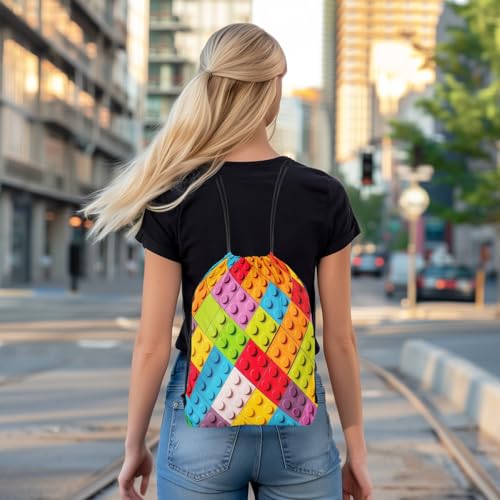 Feelyou Toy Brick Sports Drawstring Sackpack Building Blocks Drawstring Backpack for Games Drawstring Bags 13"x15.7" Colorful Waterproof Cinch Bag