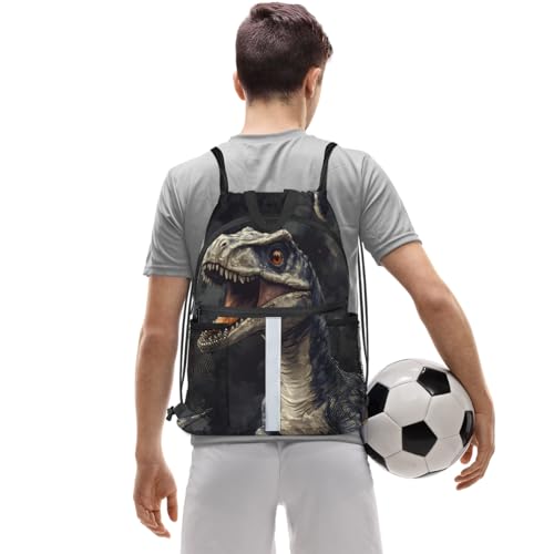 Jungle Dinosaur Drawstring Backpack Waterproof String Bag Sackpack Forest Safari Cinch Sack for Traveling Gym Sports with Mesh Pockets