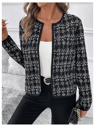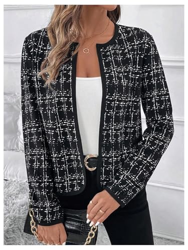 GORGLITTER Women's Casual Plaid Blazer Jacket Long Sleeve Checkered Open Front Elegant Office Work Blazer Suit 5