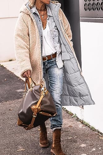 Thatrich Long Puffer Coat Women Casual Reversible Fleece Jacket Coats Loose Fit Windbreaked Winter Oversized Outfits Hooded 5