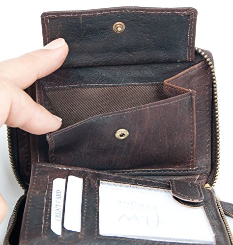 FLW Large Natural Dark Brown Zip-Around Durable Genuine Leather Wallet with Scorpion 5