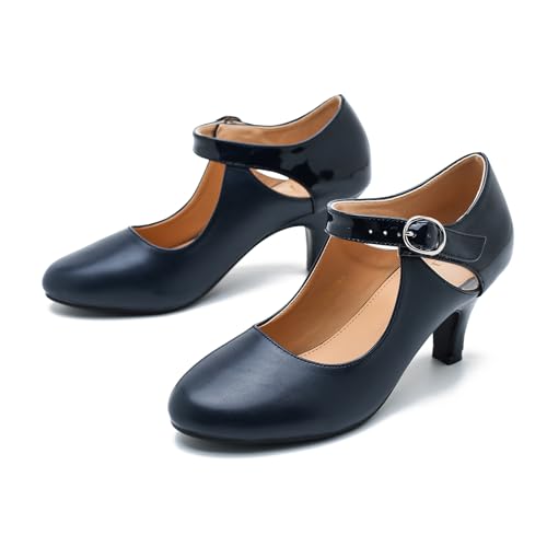 Sole material: RubberOuter material: Faux LeatherClosure type: BuckleWomen's Pumps Materials: Faux Velvet Upper/High quality synthetic Matte PU Leather, Soft Comfortable Lining And Padded Insole, Non-Slip Rubber Outsole, Sturdy Kitten Heels Easy To Walk In.Pumps Shoes Women:Low heel measures approx 2.56/6.5cm, These heels feature a classic round-toe, Adjustable buckle with T strap design makes it easy to open and close, comfortable and stylish dress pump.as well as a Nonslip and wearable rubber outsole for easy movement.Dress Shoes for Women:These beautiful heels feature a round toe design look that is just adorable. perfectly cut out to accentuate an adorable vintage look for all your outfit needs. Featuring an adjustable ankle strap with a t-strap to keep your feet in place for a custom fit. Spice up your look and walk with style and confidence!Comfortable Heels for Women: Versatile And Trans-Seasonal, These Kitten Heels Are Wearable All Year Around. The Best Companion For A Conservative Look. Pair These Pumps With Wide-Leg Trousers For A Timeless Approach To Elegance.Kitten Heels for Women:This comfortable pumps shoes is suitable for Wedding, Party, Office, Business, Evening Events, Charity Balls, Prom, Church, Graduation Ceremony, Etc. Perfect for everyday use. High quality materials and excellent craftsmanship ensure long-lasting durability.