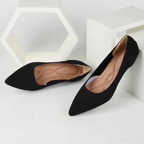 YEOJOU Heels for Women Knit Pointed Toe Women Pump Shoes Low Heel Comfortable Womens Dress Shoes Work 6
