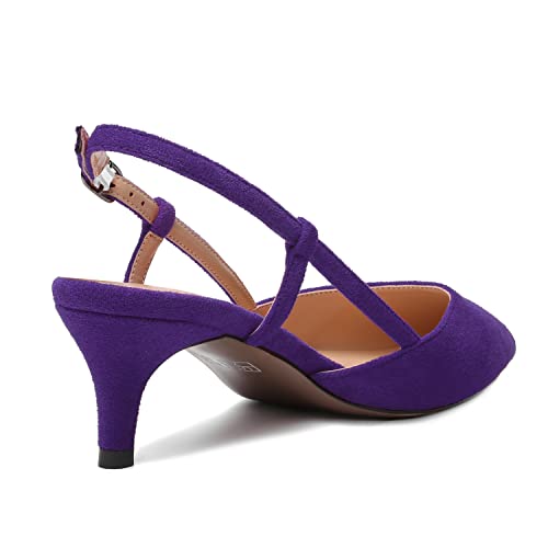 MODENCOCO Womens Pointed Toe Slingback Fashion Wedding Suede Elegant Buckle Kitten Low Heel Pumps Dress Shoes 2 Inch 5