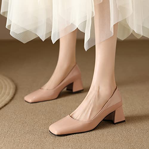 Concise Patent Block Heel Square Toe Women Pumps 6