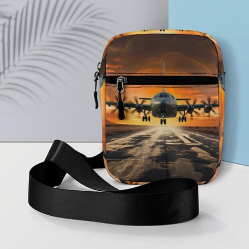 Personalized Small Crossbody Bag Water Resistant Messenger Bags Mini Aircraft Approach Printing SlingBag For Men Women 7