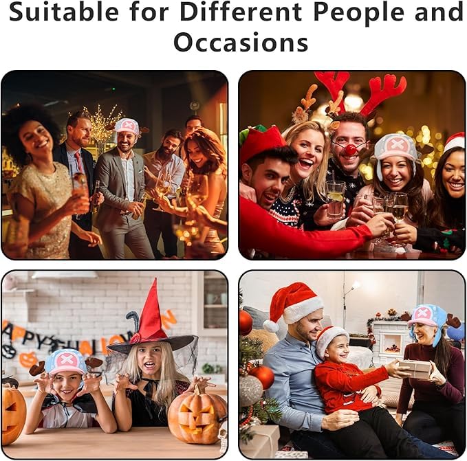 • CUTE & UNIQUE DESIGN: Distinctive antlers and blue nose decoration, a blend of cute and fun elements, this chopper hat is perfect for cosplay dress up. Chopper Hat for Kids Cosplay Accessories, Plush Chopper One Novelty Funny Piece Anime Costume