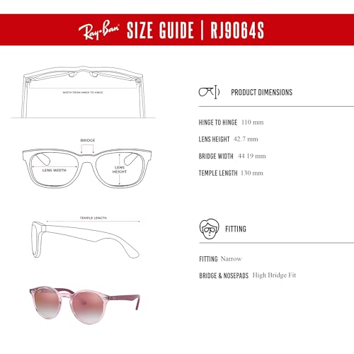 About the frame: Designed for boys and girls, the Ray-Ban RJ9064S features a Transparent Pink full-rim plastic frame in a round Phantos shape, delivering a trendy and eye-catching look. The lightweight and durable construction ensures all-day comfort, making it perfect for any occasion.Lens Technology: Equipped with Clear Gradient Red Mirror Red polycarbonate lenses, these sunglasses offer a smooth transition from dark to light, reducing glare while enhancing visual clarity and contrast. The mirrored coating provides a bold reflective effect, while UV protection helps shield eyes from harmful sun exposure.✅ Non-Polarized Lenses with UV Protection & Natural Clarity: These lenses are non-polarized, offering full UV protection while maintaining natural color perception—great for everyday outdoor use.✅ Comfortable, Lightweight Frames for All-Day Wear: Crafted from durable, lightweight materials that provide long-lasting comfort during travel, errands, or time in the sun.✅ Eyewear Care Kit Included for Easy Maintenance: Comes with a microfiber cloth, lens spray, and mini screwdriver—everything you need to clean, adjust, and protect your sunglasses. Perfect for everyday use. High quality materials and excellent craftsmanship ensure long-lasting durability.