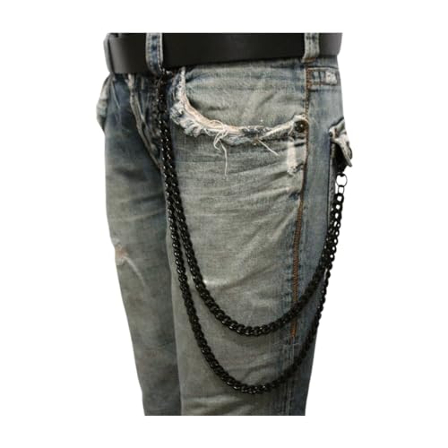 Why Choose Men Wallet Chain Biker Long Fashion Jeans Keychain Strand Motorcycle Link 2 Strands Black?