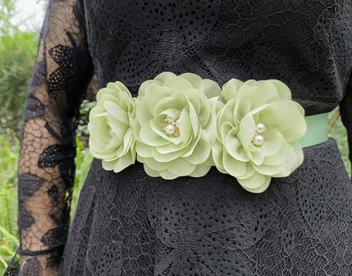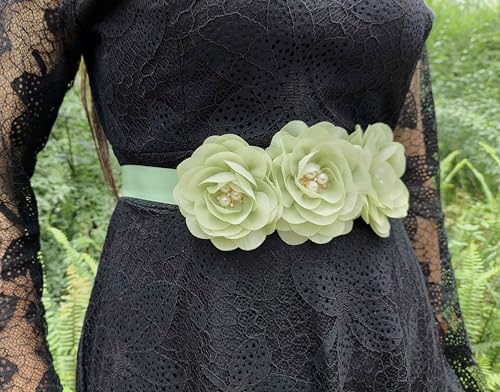 Flower Girl Sash Sage Green Flower Girl Sash Belt for Dress, Chiffon Pearl Floral Sash Belts for Bridesmaid/Bride Dresses 6