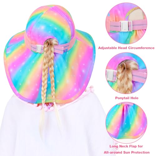 Kids Sun Hat for Girls UV Protection Wide Brim Mesh Toddler Summer Beach Fishing Hat with Neck Flap for Girls 3-8 Years