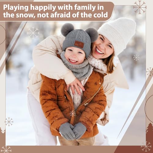 Handepo 2 Set Kids Winter Hat Scarf Gloves Set Warm Toddler Knit Beanies Gloves Neck Warmer for Boys Children Girls