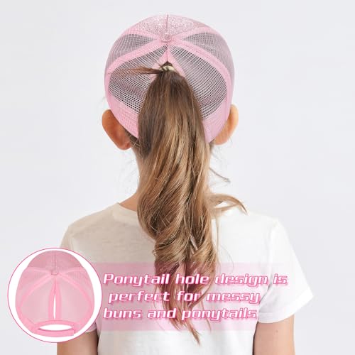 Girls Baseball Cap Kids Sunglasses, Glitter Sun Hat Breathable Mesh Ponytail Cap Trucker Cap Adjustable Summer Hat for Girls Outdoor Sports Pink