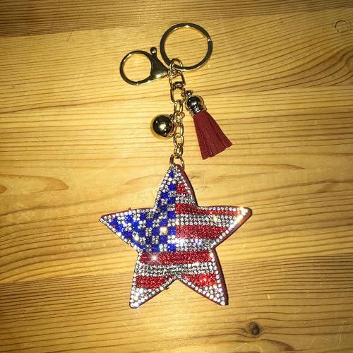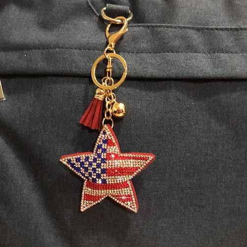 HOT ! Popfizzy Rhinestone American Flag Keychain for Women, Bling Star Keychain, Purse Charms for Handbags, Cute Gifts