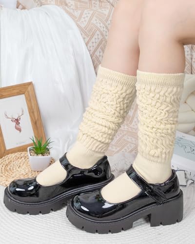 Slouchy Socks for Women 4 Pairs Slouch Long Scrunch Knee High Sock Knit Cotton Boot Tube Socks