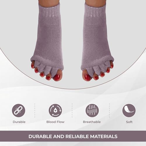 Happy Feet Toe Separator Socks - Comfortable Alignment Socks – Washable Massage Socks – Prevent Foot Cramp and hammertoes (Purple)