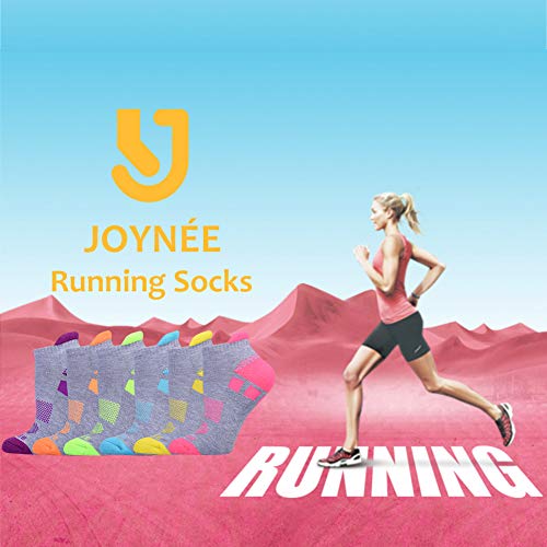 JOYNÉE 6 Pairs Women's Ankle Athletic Running Socks Performance Cushioned Low Cut Sports Socks with Heel Tab