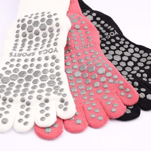 HOT ! Pilates Yoga Socks with Toes Separated, Striped Non-slip Toe Socks with Grips for Women, 3 Pairs