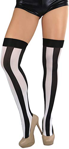 • 💕 Are you looking to accentuate your legs? These sexy opaque thigh highs with wide vertical stripes are perfect for your costume, or any occasion where you require just that bit of extra oomph. Ideal for halloween and fancy dress parties when you want to invoke a clownish or carnival inspired look. An eye catching garment that will make you look good, no matter the costume.