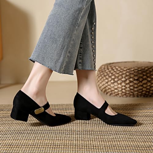 HOT ! Women's Suede Square Toe Low Chunky Heel Mary Janes with Adjustable Hook and Loop Fashion Metal Accent Comfortable Block Heel Non-Slip Pumps for Wedding Party Dress Work