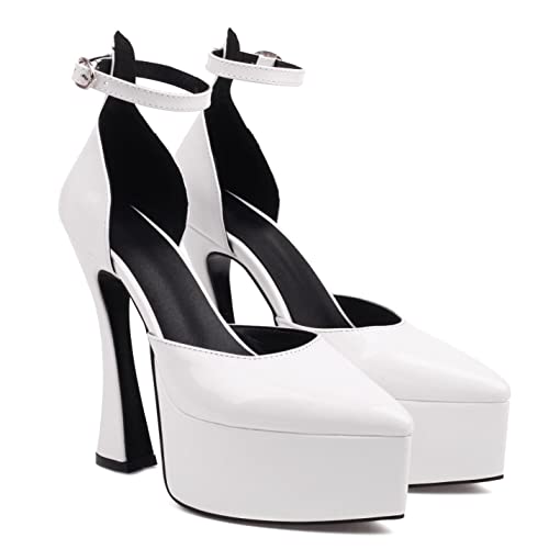 • Perfect Design: Platform pointy toe pumps with high block heel, ankle strap for easy ware on/off.