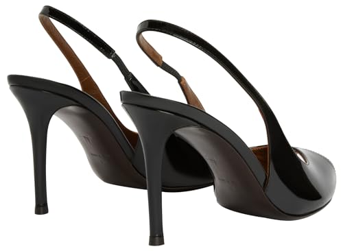 • Taupe-coloured patent leather and taupe leather-covered elastic detail