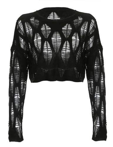 Womens Gothic Short Sweaters Punk Goth Sweater Long Sleeve Knitting Crop Tops US Size S-XL 5