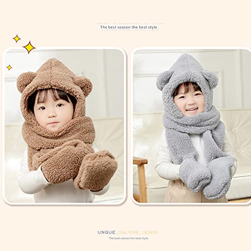 • 💕3 IN 1 WINTER ACCESSORIES --- This cute bear plush hat integrates three kinds of warm accessories --- hat, scarf and gloves, which can keep the baby's head, ears, face, neck and hands warm. Suitable for daily warmer and outdoor activities.