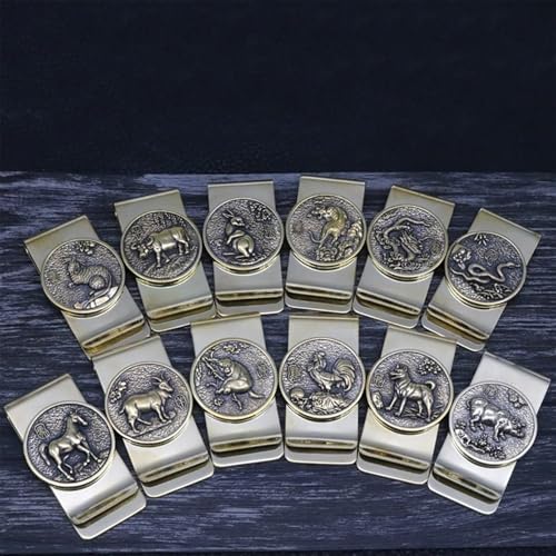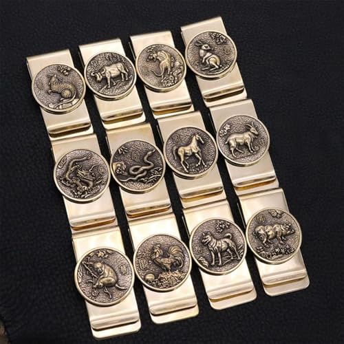 TsoLay Brass Moneyclip for Cash, Zodiac Money Clip, Metal Money Clip, Vintage Coin Money Clip, Hold About 10 Cash Banknotes and 2 Cards, Size : 5.7 * 3cm(2.24 * 1.18in)