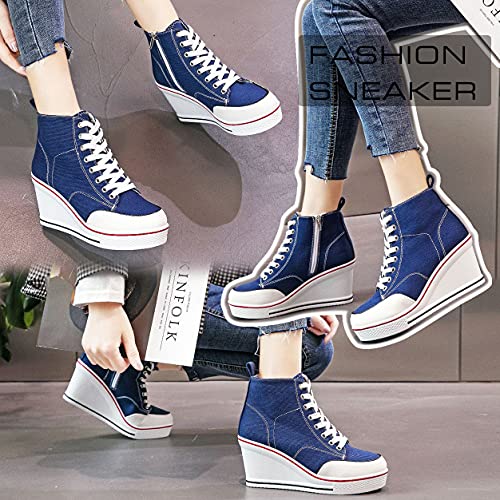 Mei MACLEOD High Heel Sneakers for Women Wedge Heel Sneaker with Side Zipper Casual Lace Up Canvas Shoes for College Students 6