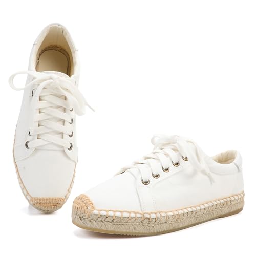 Women's Espadrille Lace-up Sneakers Platform Jute- Breathable for Casual Comfort Flat Shoes 6