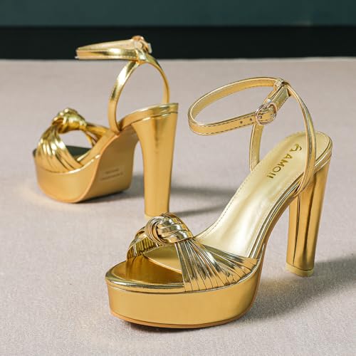 Women's Block Heels 4 Inch Platform Braid Knot Ankle Strap Lady Heeled Sandals FZ319 5