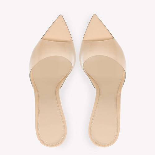 Women's Clear Pointed Toe Slingback Stilettos Heel Sandals Fashion Sexy Comfortable Summer Open Toe Backless Slip On Dress Slides Sandals for Casual Outdoor Party Work Wedding