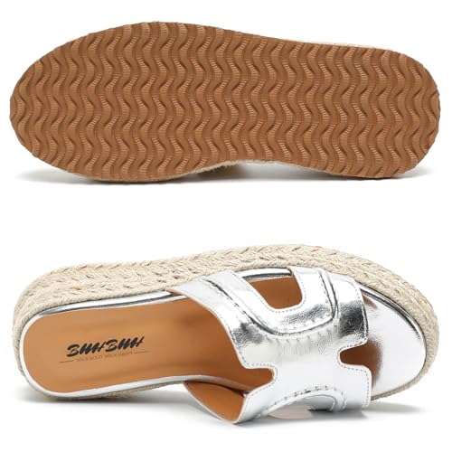Espadrilles Wedges for Women Platform Raffia sandals Beach Slip On Shoes Summer Open toe heels Leather uppers Slides Mules for Dressy 6