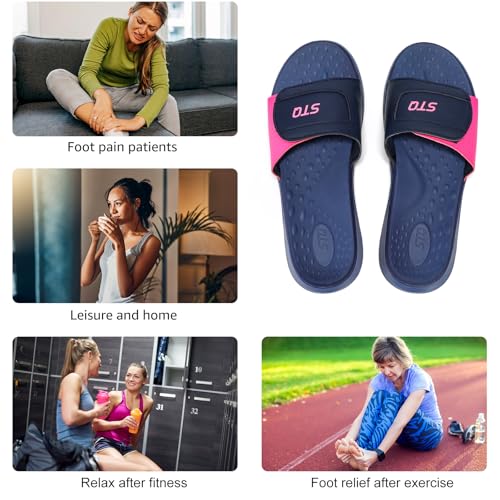 STQ Orthopedic Slides for Women Memory Foam Sandals Arch Support Slide Sandals with Adjustable Hook and Loop
