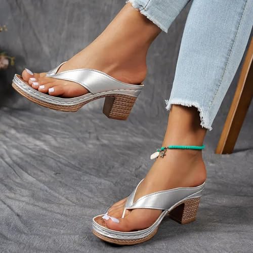 HOT ! Summer Sandals for Women 2025 Comfortable,Women's Dressy Block Heel Walking Sandal with Arch Support Slip On Open Toe Flip Flops Bridal Party Wedding Shoes Casual Wedge Thong Platform