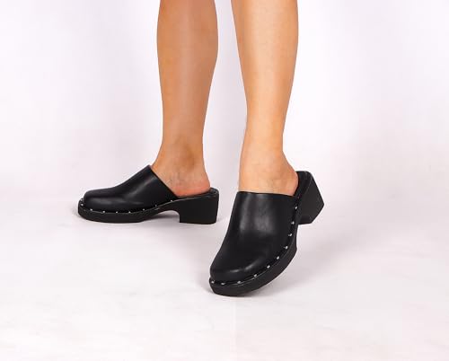 • MEMORY FOAM PADDING: Enjoy all-day comfort with the memory foam padding in these silver rivet womens shoes. The soft cushioning conforms to the shape of your feet, providing a custom fit and reducing foot fatigue. Perfect for long hours, whether you're wearing mules for women or clogs for women