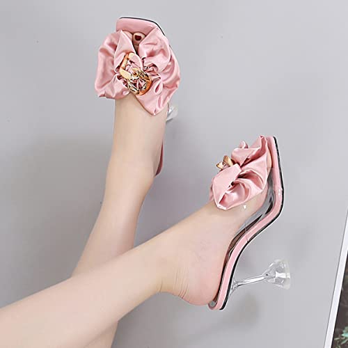 Why Choose Women's Clear High Heel Mule Sandal Square Open toe Slide on Wedding Party Dress Shoes with Bow?