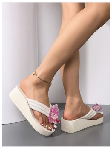 Verdusa Women's 3D Floral Platform Sandals Holiday Wedge Sandals Beach Flip Flops 3