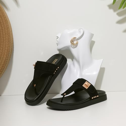 • 【Stylish & Durable Flip Flop】Chic women's platform sandals, ingeniously designed with bold stud details that add an edgy touch, while the luxurious brown suede and synthetic upper ensure durability and timeless appeal.