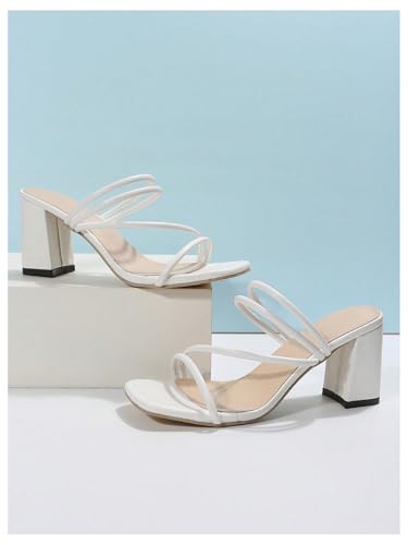 SHENHE Women's Square Open Toe Heeled Sandals Slingback Strappy Chunky Block Heels Mules 4